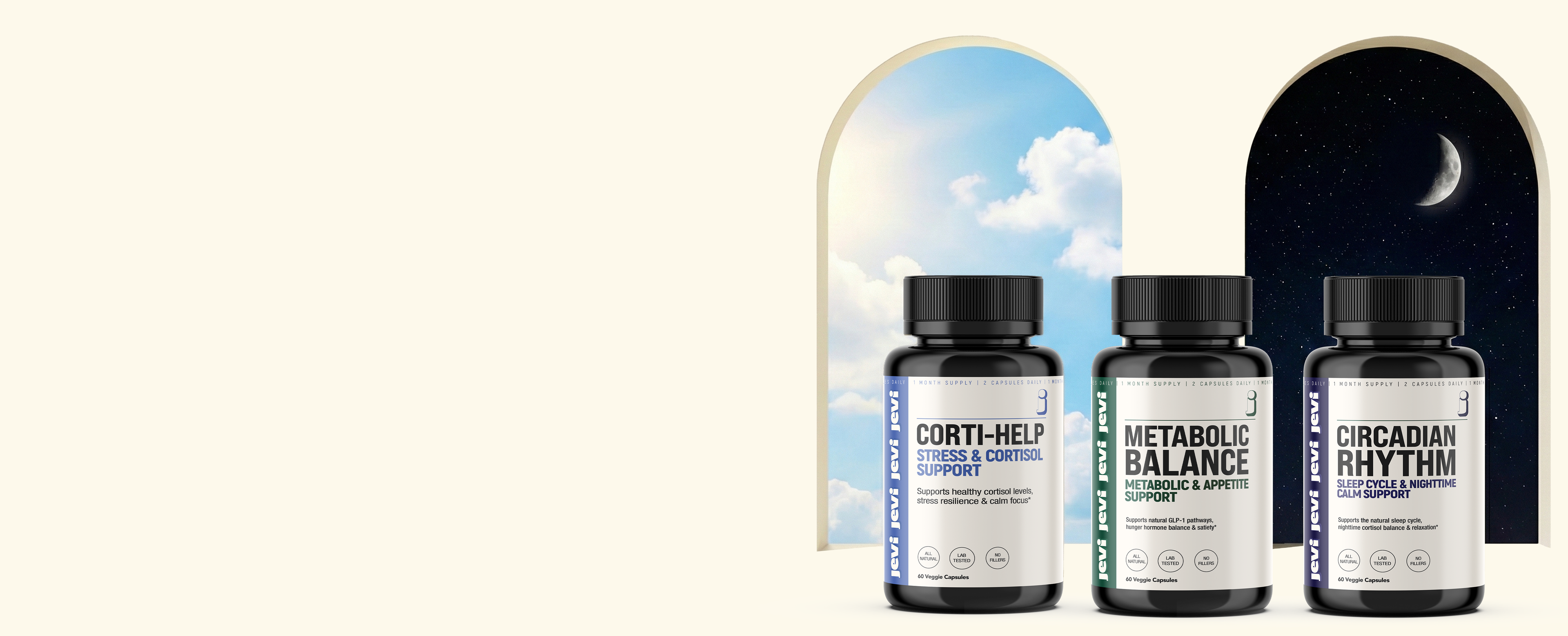 At Jevi Supplements, our mission is to help you restore balance—in your stress response, your sleep, and your relationship with food through precision-formulated, science-backed supplements that work with your body's natural systems.