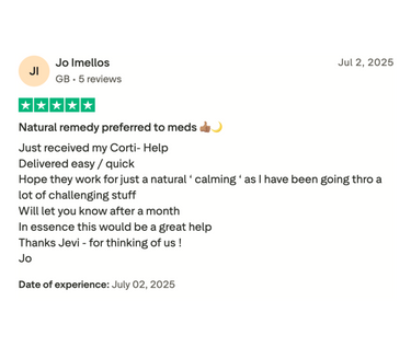 If you're on HRT, Corti-Help is safe to take and may even help your therapy work more effectively. High cortisol can disrupt estrogen and progesterone balance, making symptoms harder to manage. By calming the nervous system and restoring more balanced cortisol rhythms, Corti-Help helps create a more stable hormonal environment—so you feel more emotionally steady, sleep deeper, and regain control over cravings and inflammation.