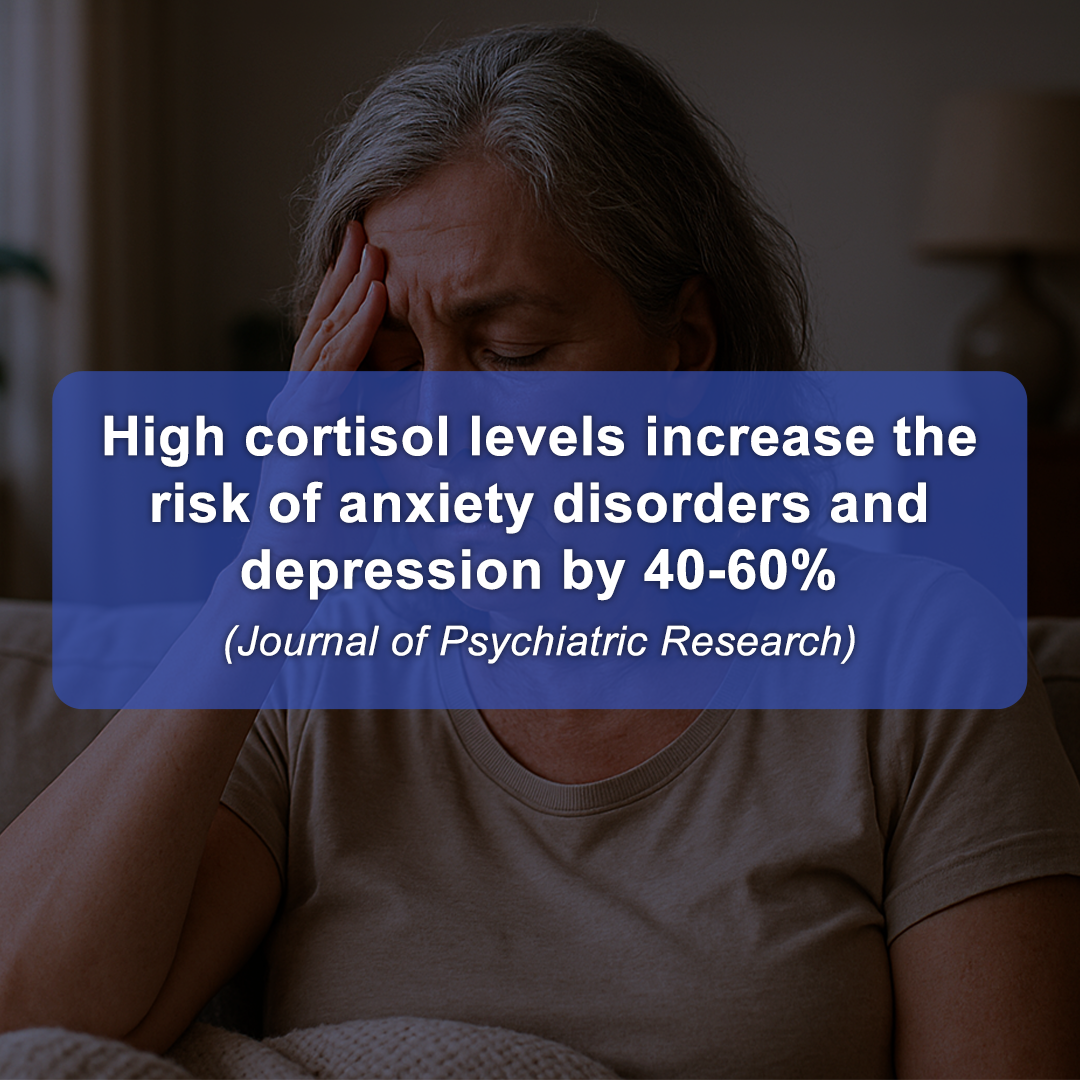 High cortisol levels increase the risk of anxiety and depression by 40-60% (Journal of Psychiatric Research)