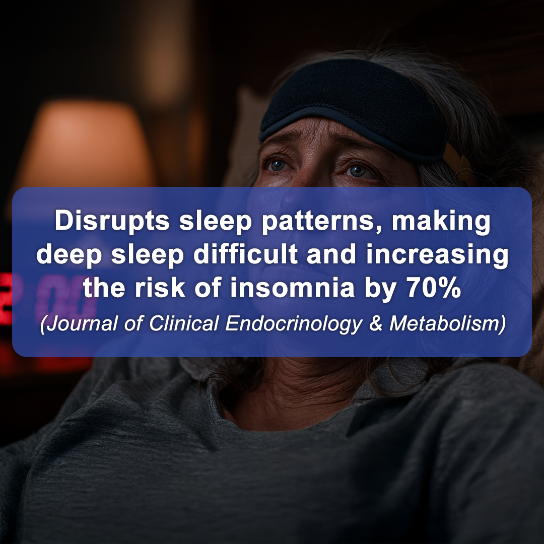 Disrupts sleep patterns, making deep sleep difficult and increasing the risk of insomnia by 70% (Journal of Clinical Endocrinology & Metabolism).