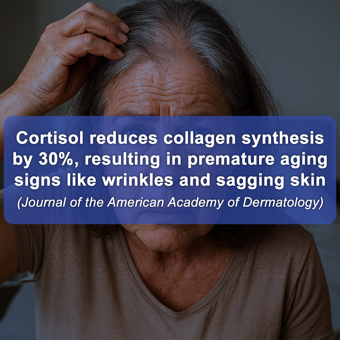 Cortisol reduces collagen synthesis by 30%, resulting in premature aging (Journal of the American Academy of Dermatology).