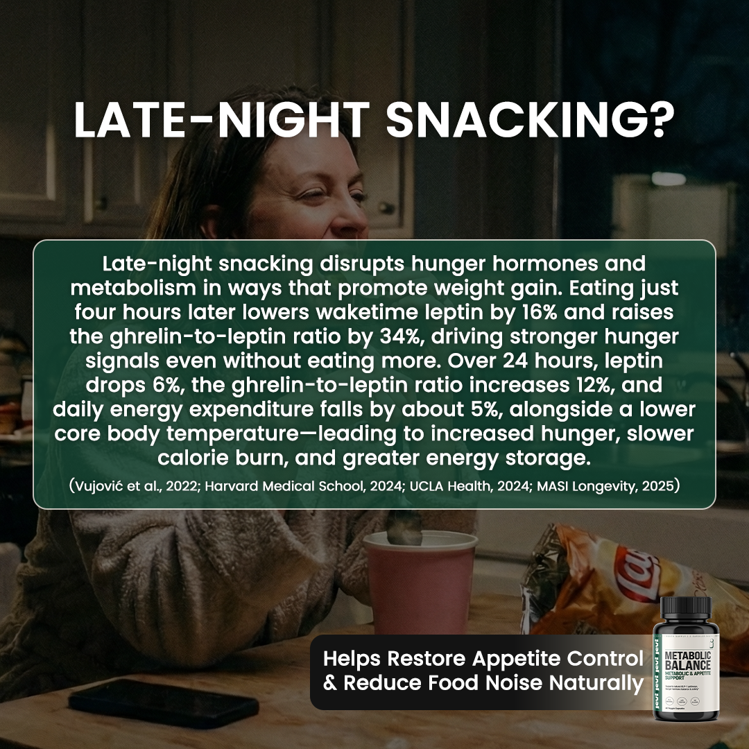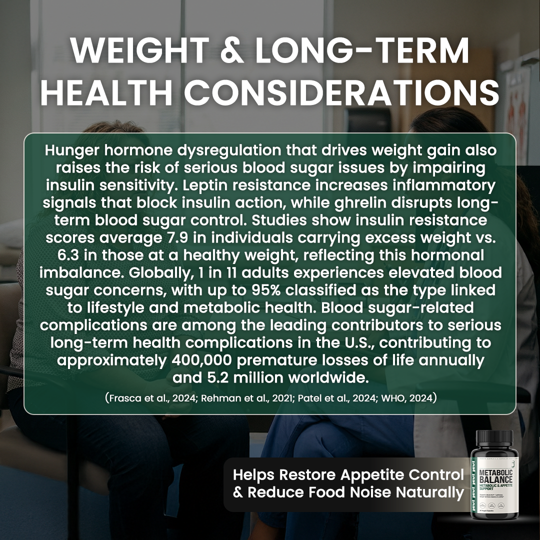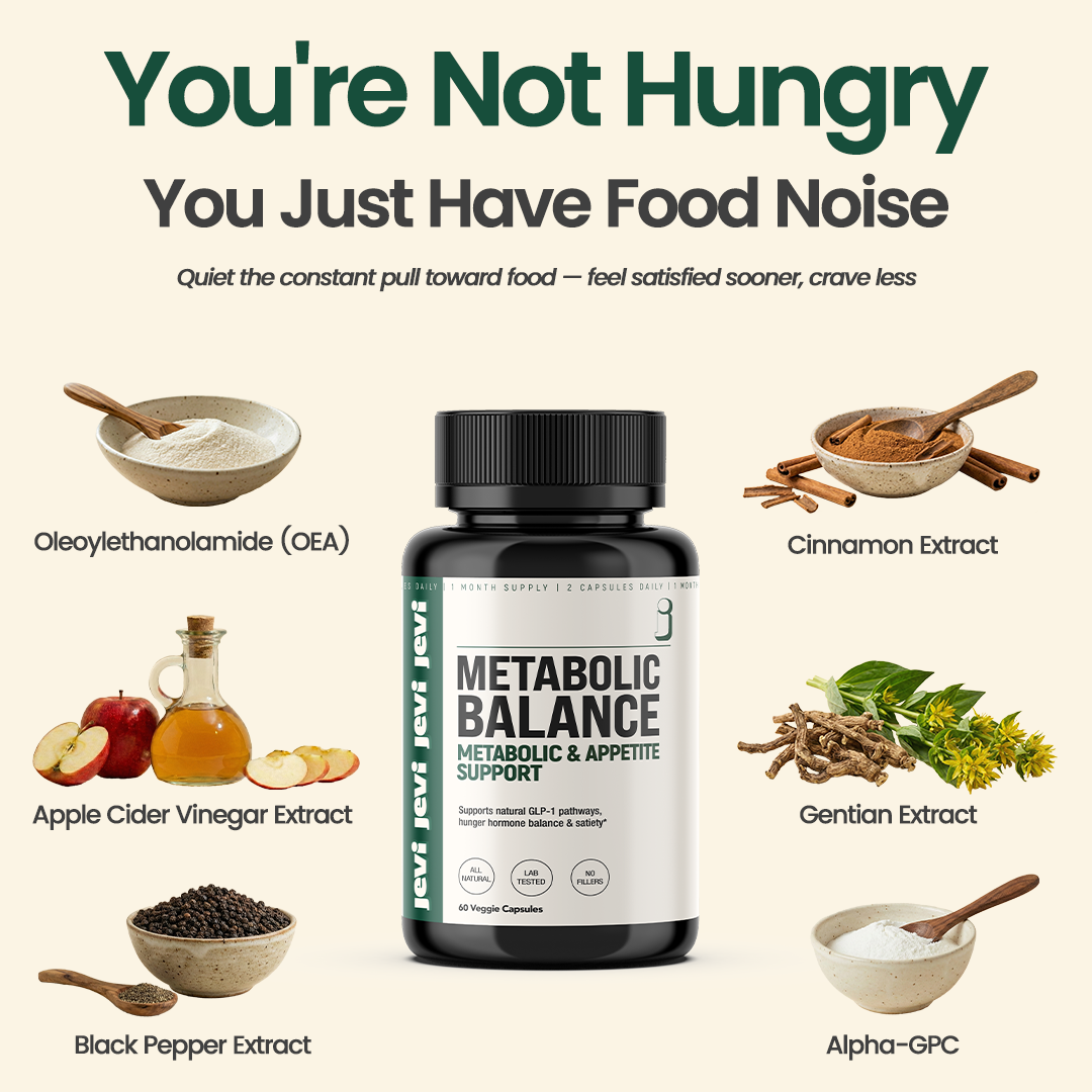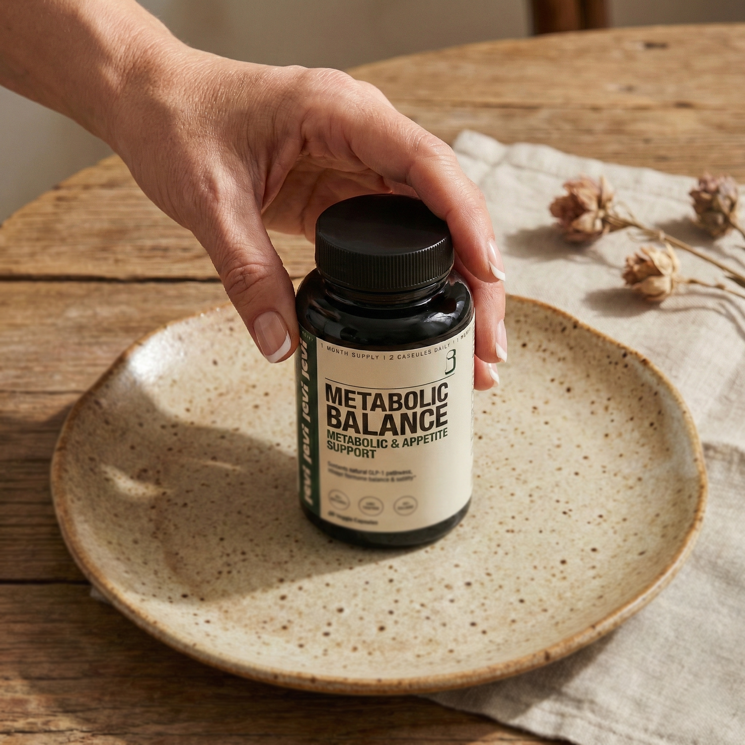 Metabolic Balance is engineered to help you eat less naturally by restoring your body's satiety signaling. By supporting natural GLP-1 and fullness hormones, it quiets "food noise" and reduces the urgent pull toward snacking and overeating.