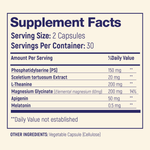 • Stage 1: Lower Stress Chemistry: 150 mg of Phosphatidylserine (PS) is used as the foundation to blunt nighttime cortisol spikes that keep your brain alert and your body tense.