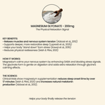 • Magnesium Glycinate: 200 mg (providing ~60 mg elemental magnesium) to support physical relaxation and parasympathetic activation.